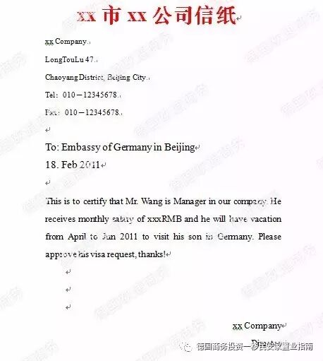 工作单位/自有企业开具的在职证明(中国企业提交中文证明,附德文或英文翻译;外国企业提交德文或英文证明)须满足以下要求: